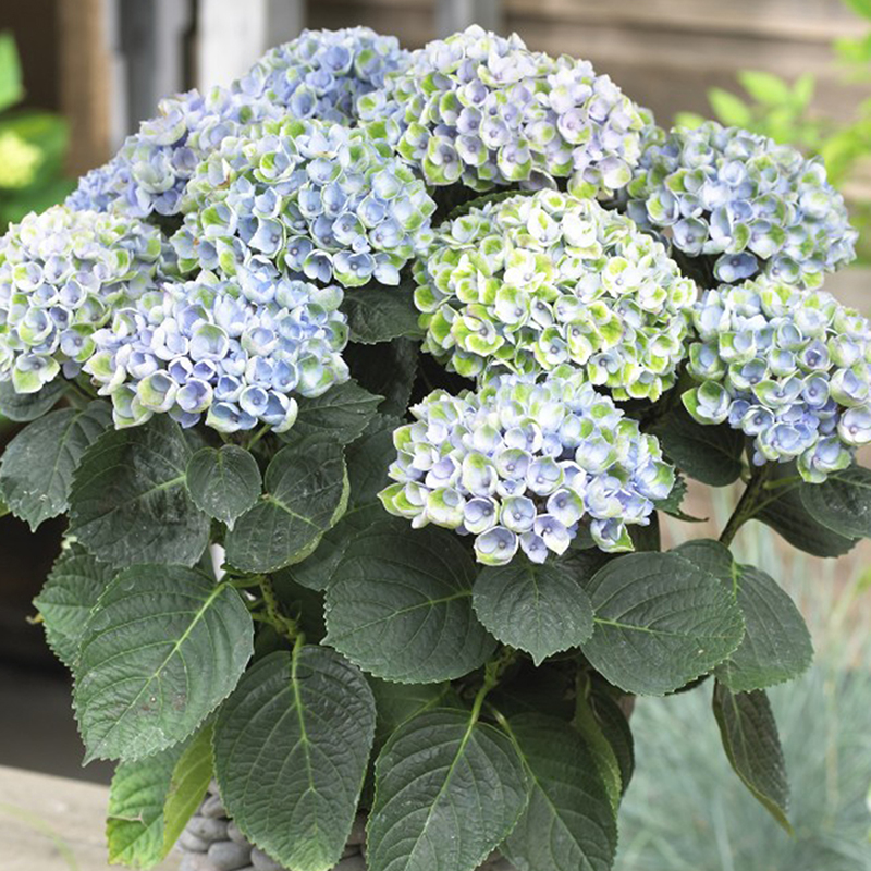 Magical Revolution also makes a festive decoration for Cinco de Mayo! Blue or pink flowers age to violet-blue or maroon-pink, putting on a color-changing show that rolls with the seasons. Margarita-green foliage in the yard brings out the beautiful chartreuse in the flowers. It’s a stunning hydrangea for decorating around the home but the plant is tough enough to stay outside on the porch or patio, too. Magical Revolution looks great in the cutting garden, and the thick, upright stems hold cut flowers high in vases.
